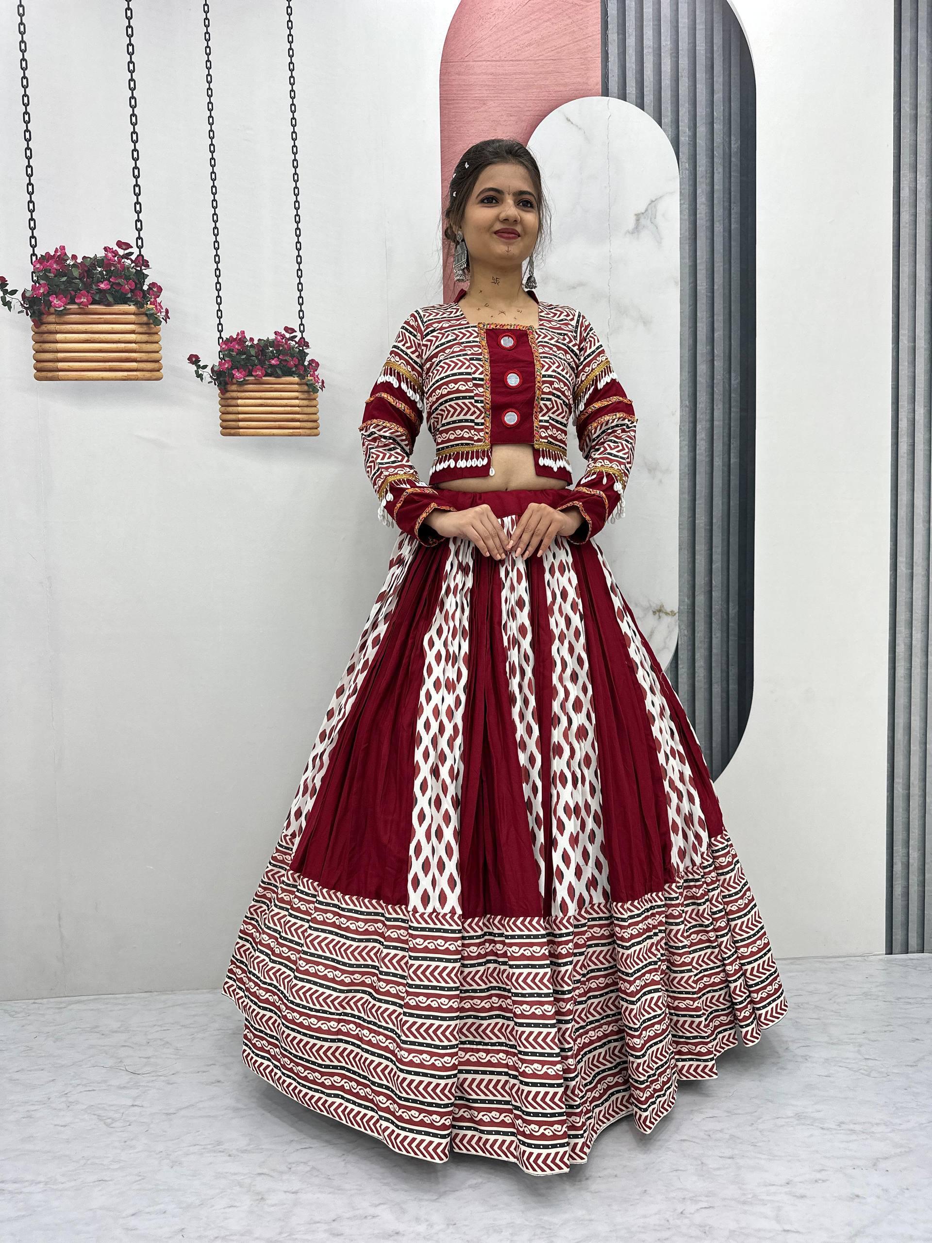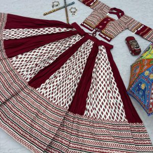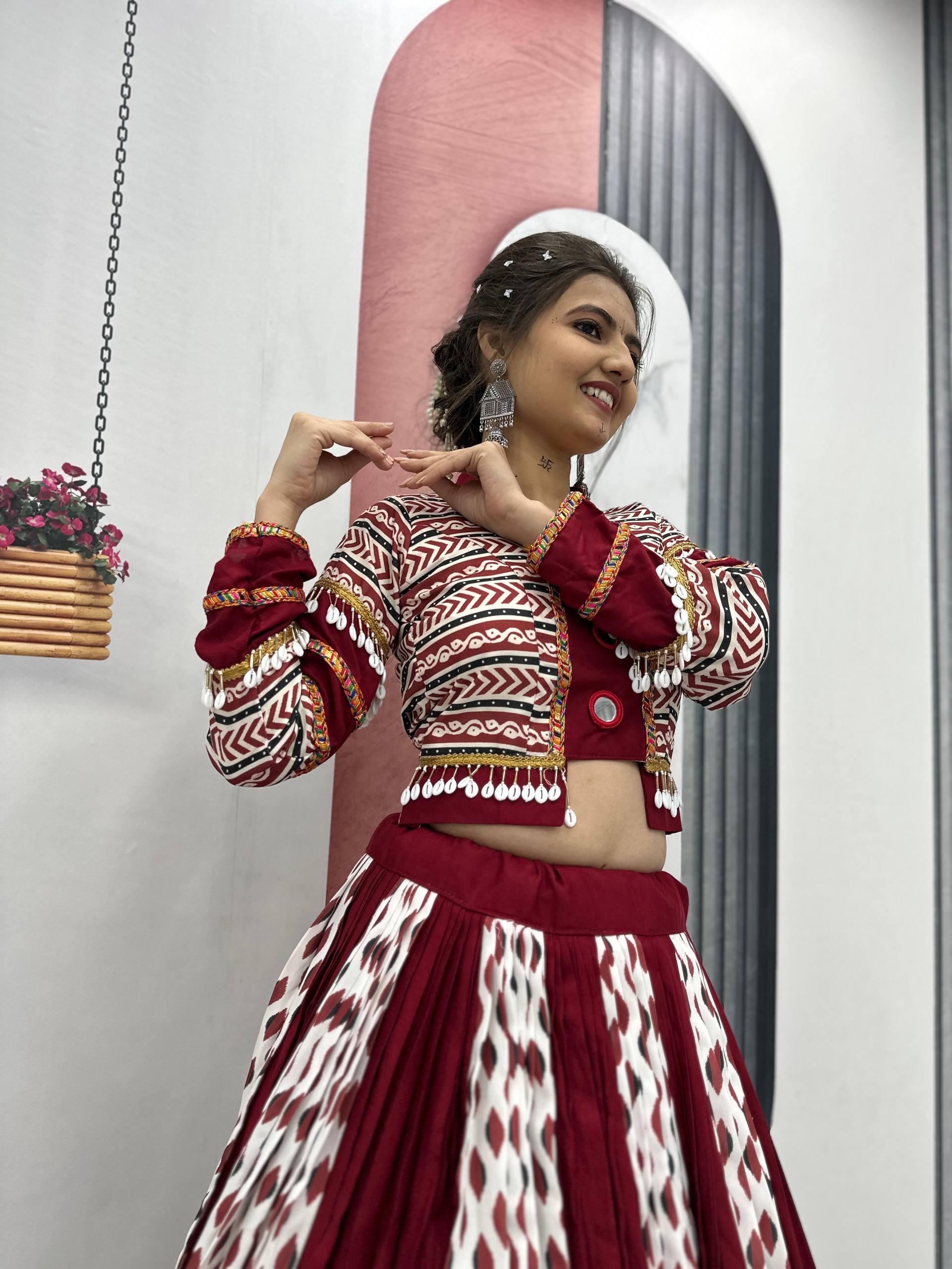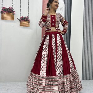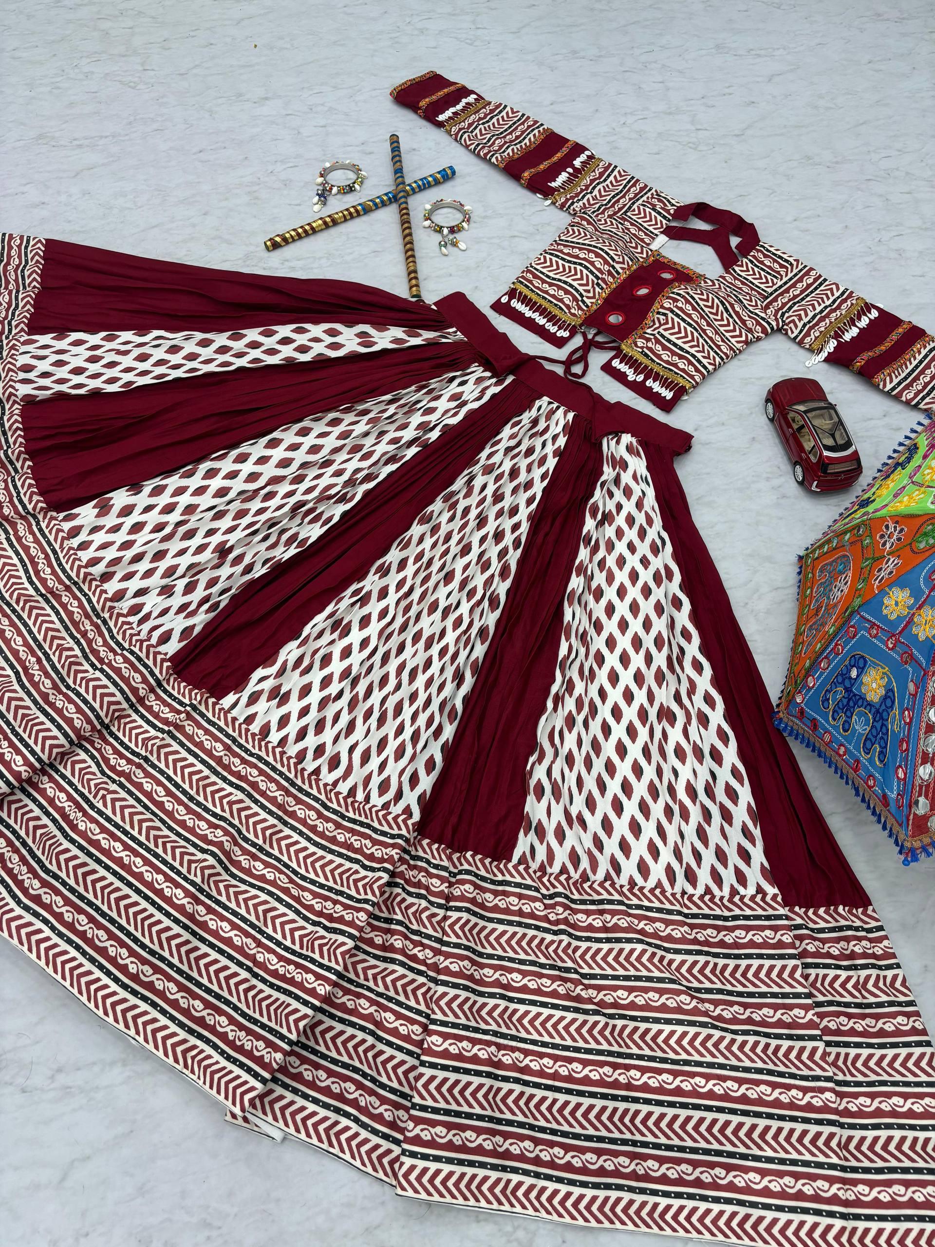 Ajarakh Prink Rayon Cotton Lehanga Choli