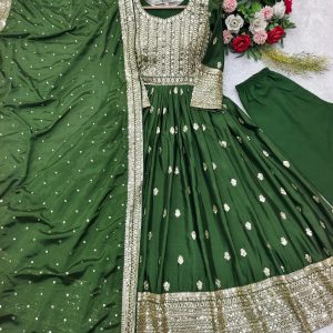 ₹1,850.00Running Wear Trending Chinon Top Cotton Thread Embroidered Work And Work Plazo With Dupatta