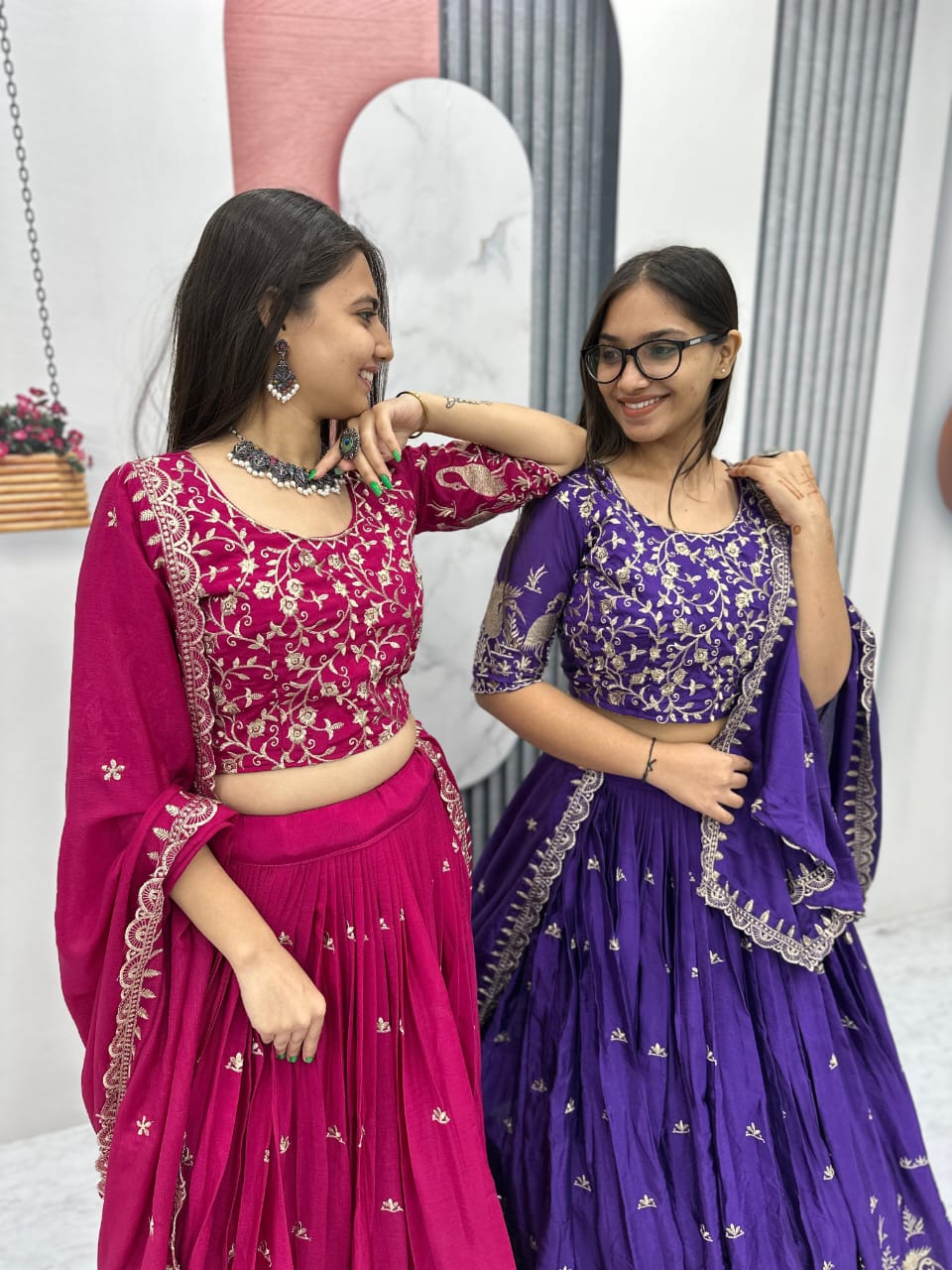 Chinon Embroidery Thread Work (stitched) Lehanga Choli