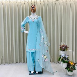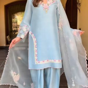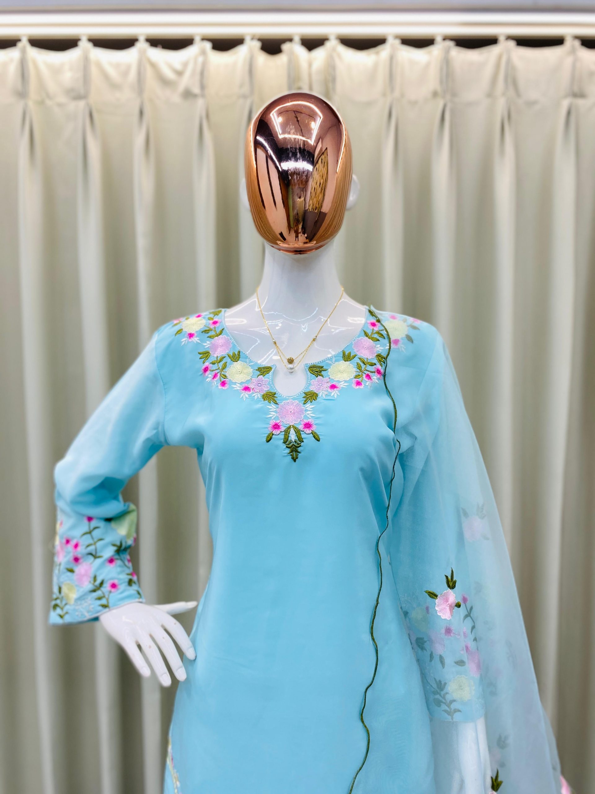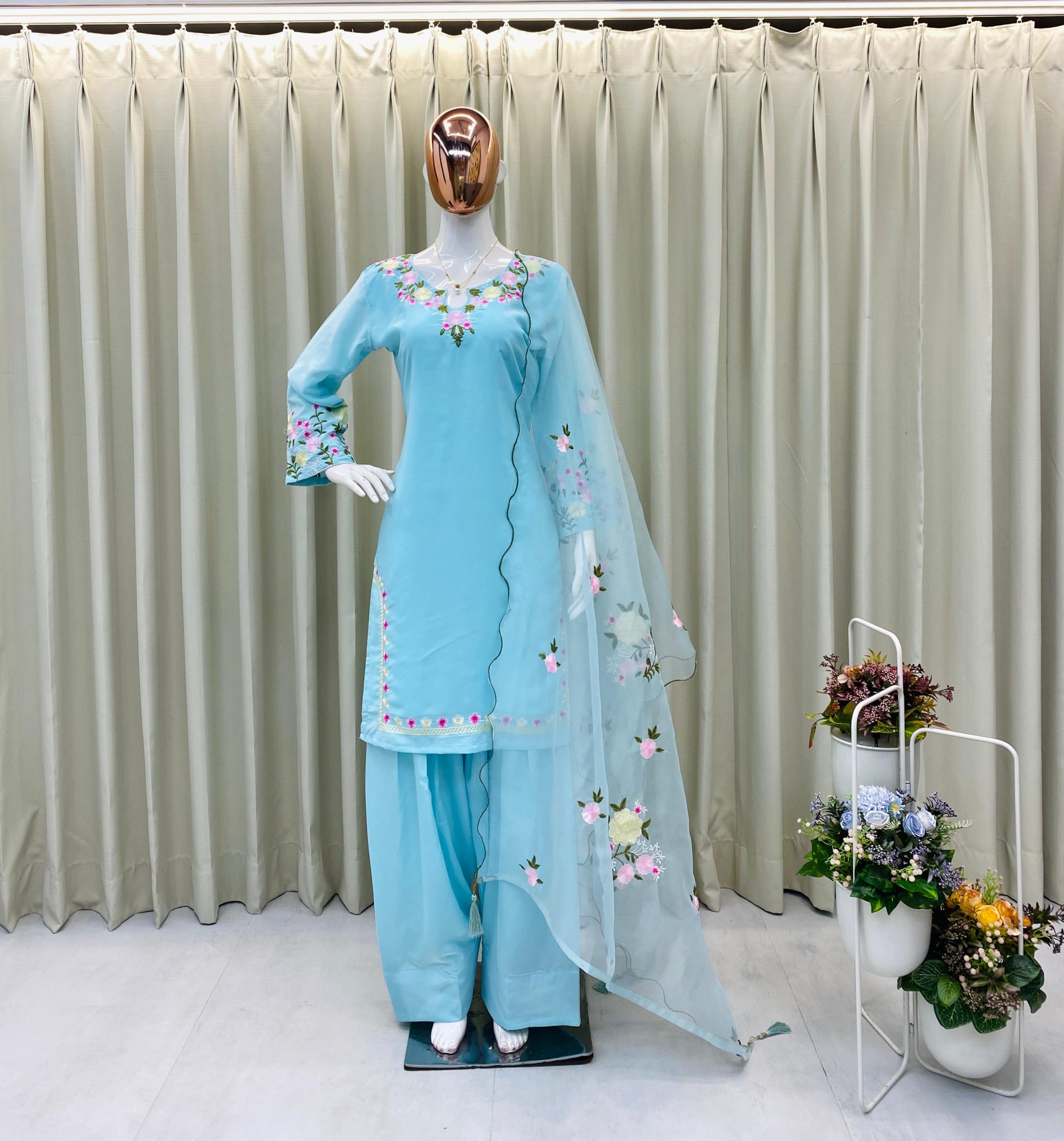• *DESIGNER AND MOST TRENDING FARSI SALWAR SUIT IN THREE PIECE WITH EMBROIDERY WORK*
