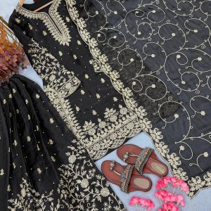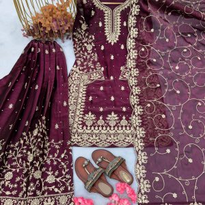 *(Fully Stitched)* - *Dupatta Fabric*:Pur Gmy Silk With Heavy Embroidery 3 mm Sequence & Coding Dori Work With Cutwork