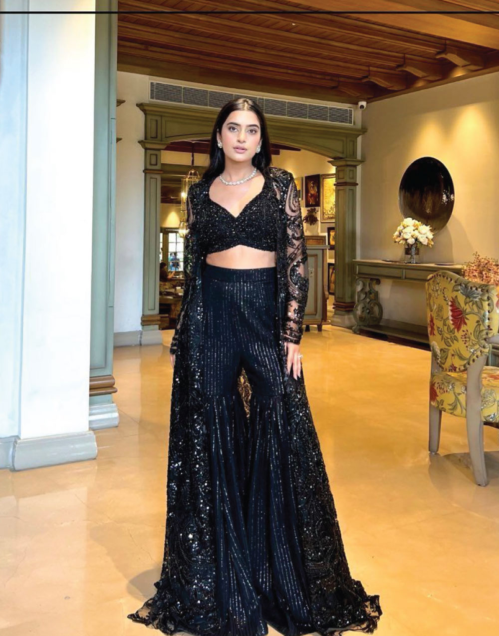 TRENDING TOP AND PLAZZO SET IN BUTTERFLY SEQUIN EMBROIDERY WORK WITH BLOUSE