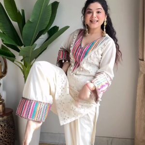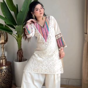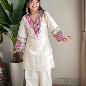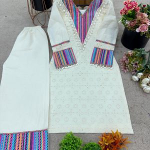 Pure Khadi Cotton With schiffli Work with Thread WorkTop Length:38-40