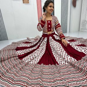 Ajarakh Prink Rayon Cotton Lehanga Choli